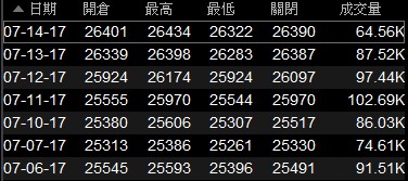 7月14日期指OHLC