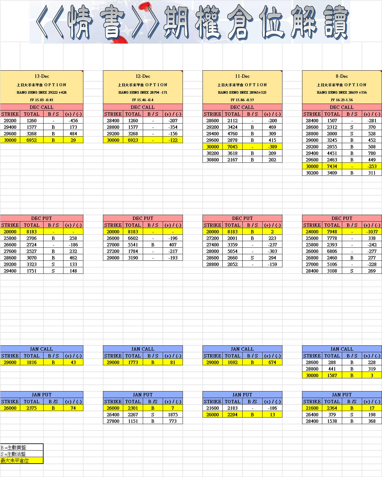 12月期指未平倉合約減少10,186張至145,948張。1月期指未平倉合約增加534張至8,955張。