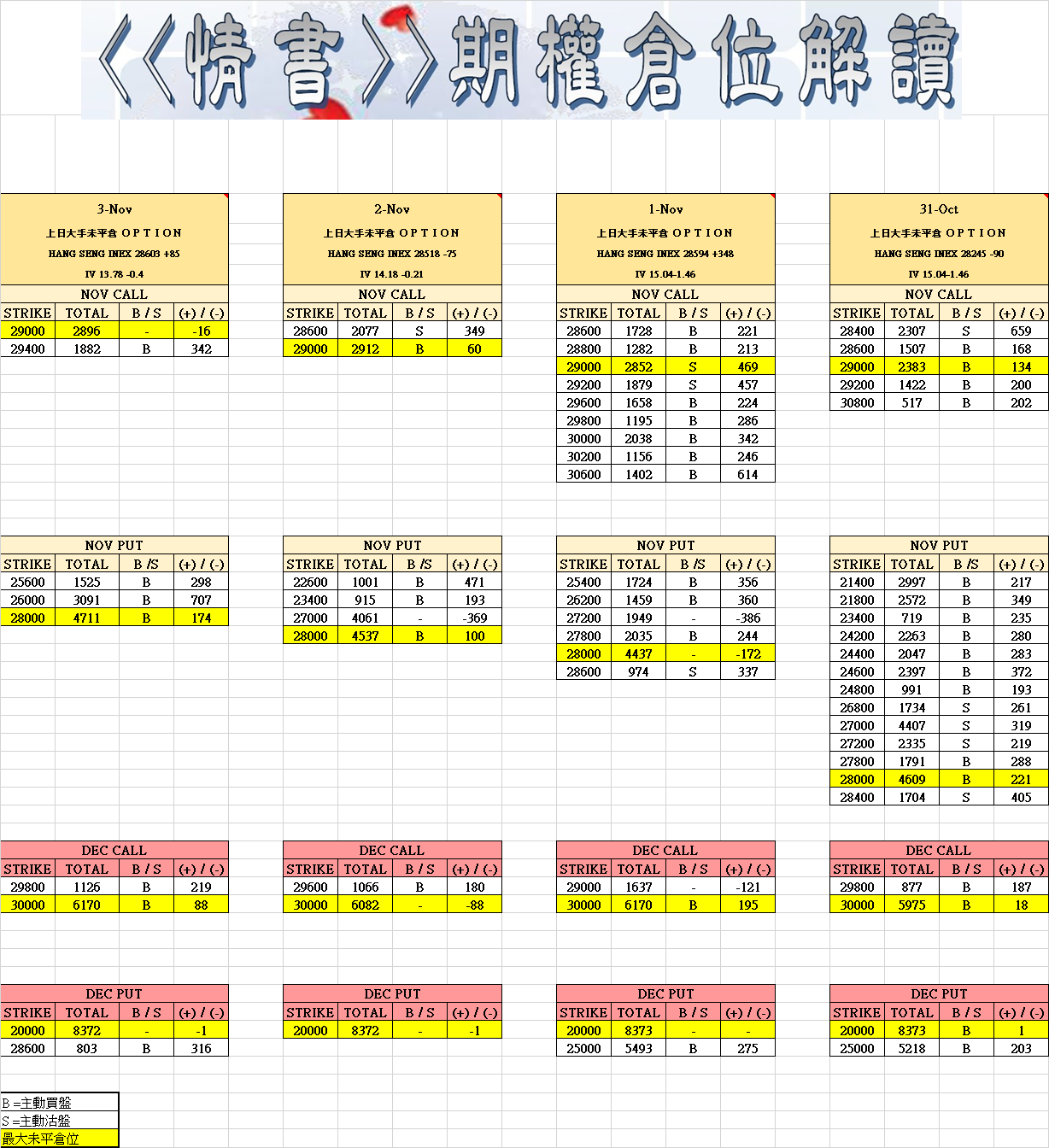 十一月份期指高位暫在 28804( 29 SEP後計算)