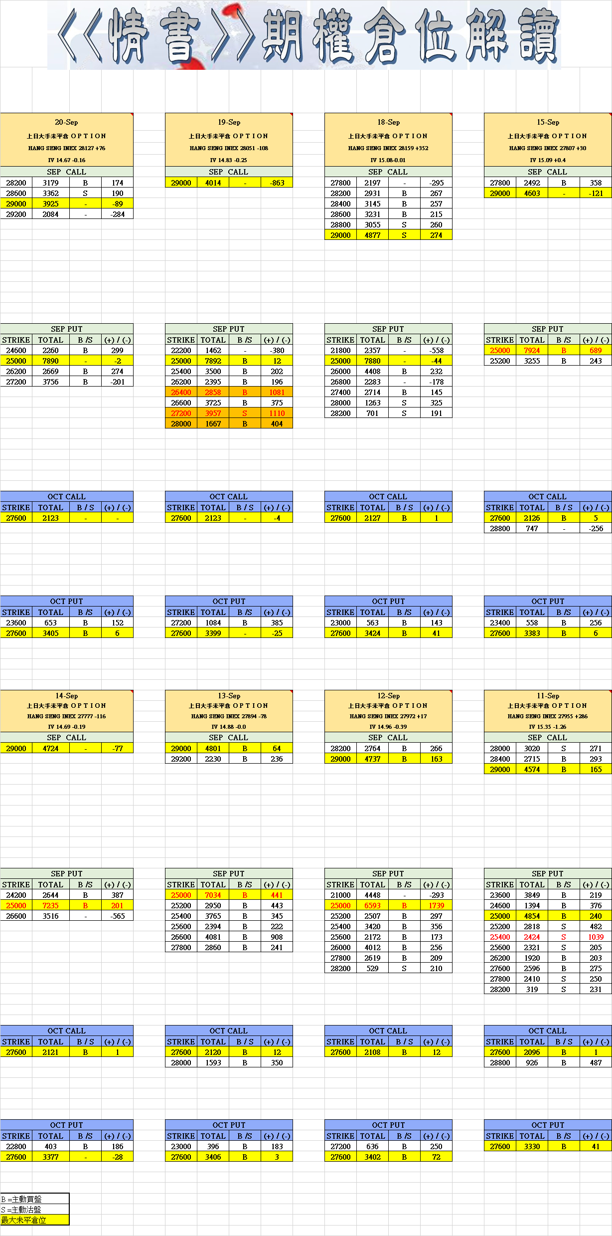 上日即月CALL OPTION大手減倉下,今日就算大市上升恐有限(除非A50爆升)勿忘現貨在27900之裂口仍未回補及(周三情書)