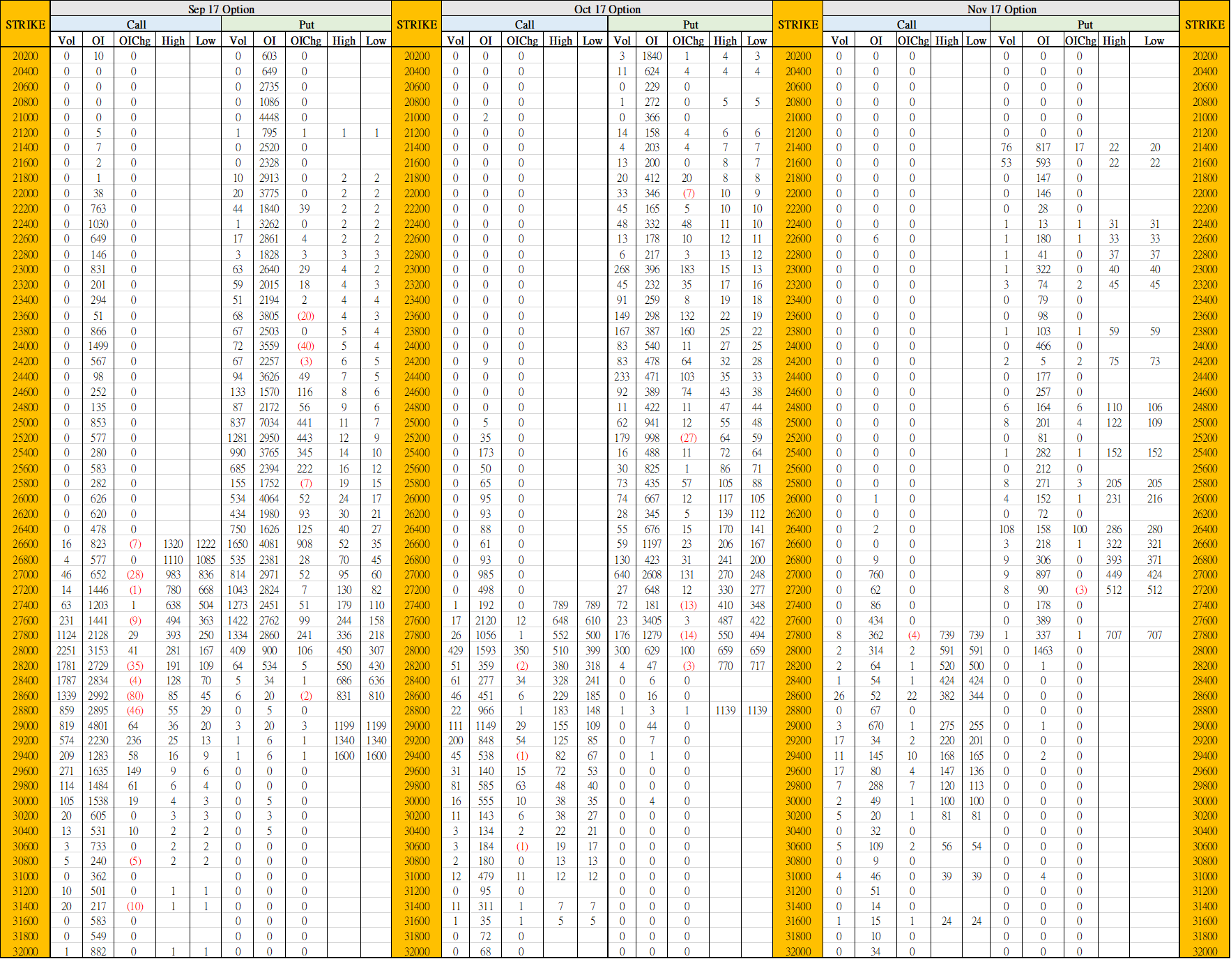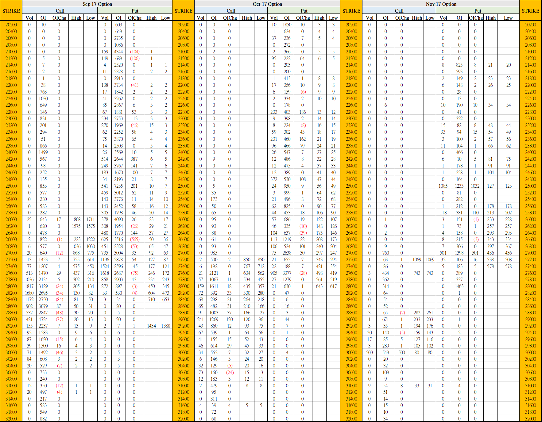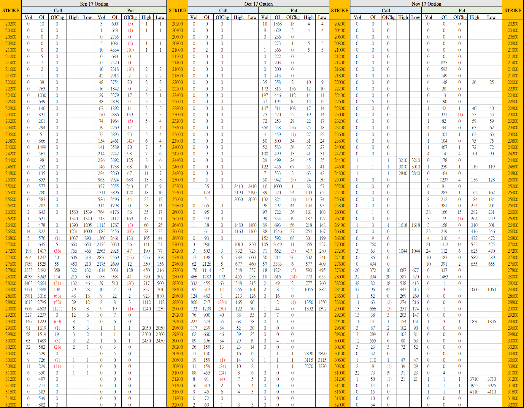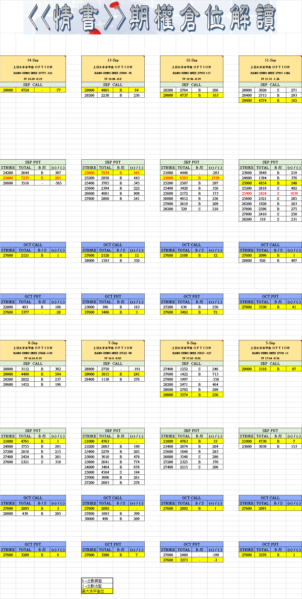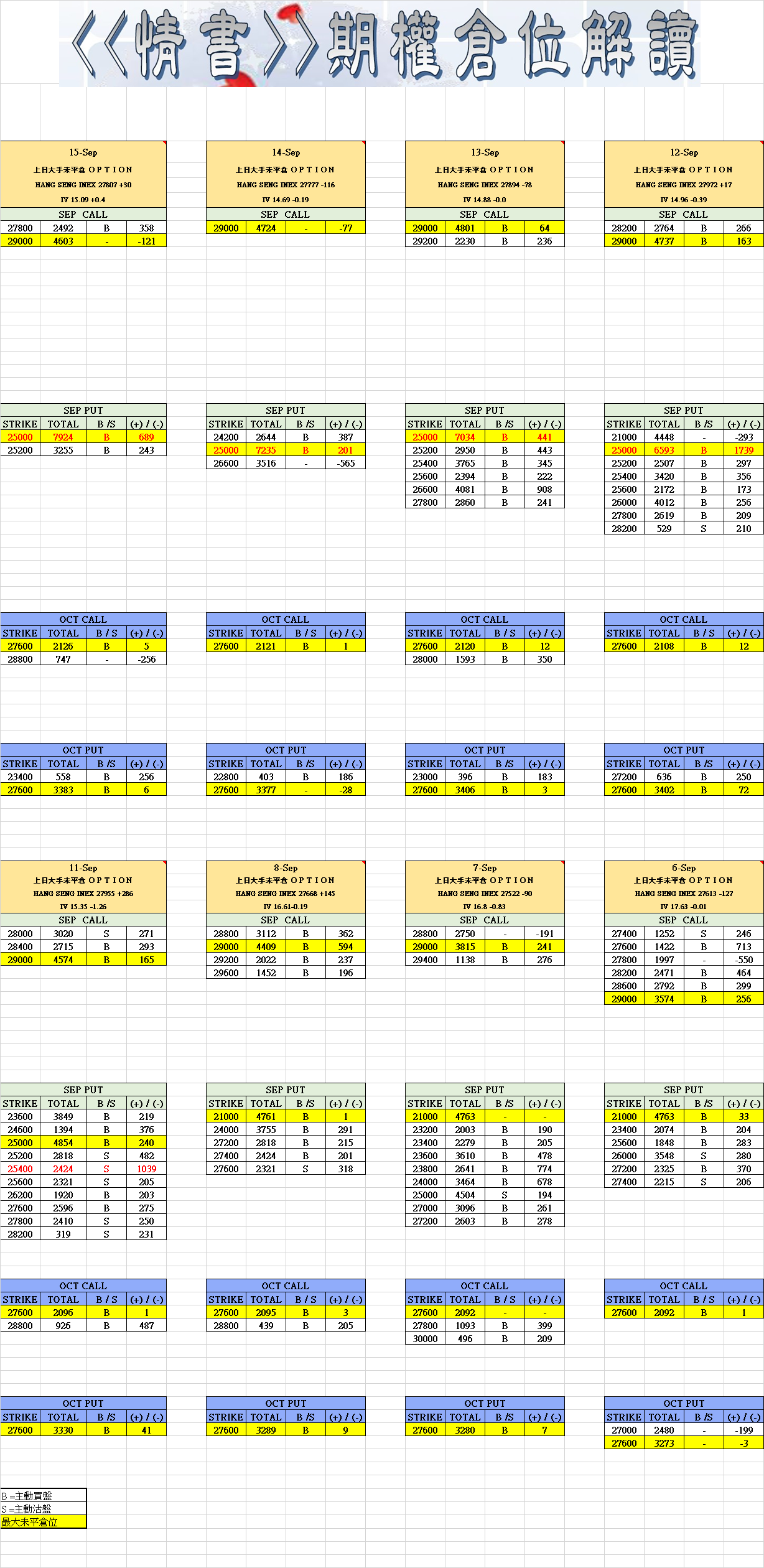 9月14日叁月期權數據