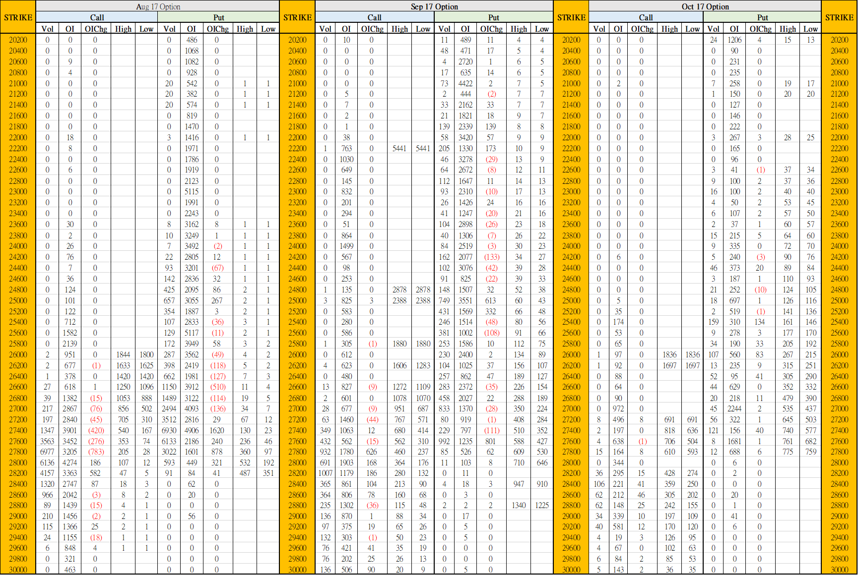 在美股昨晚DEEP V收市下,預期今日指數將裂口高開於27930水平附近,整體而屬高開高走之局,估計八月結算價將在28000點附近完工。