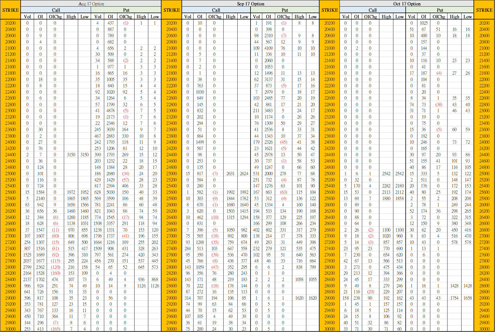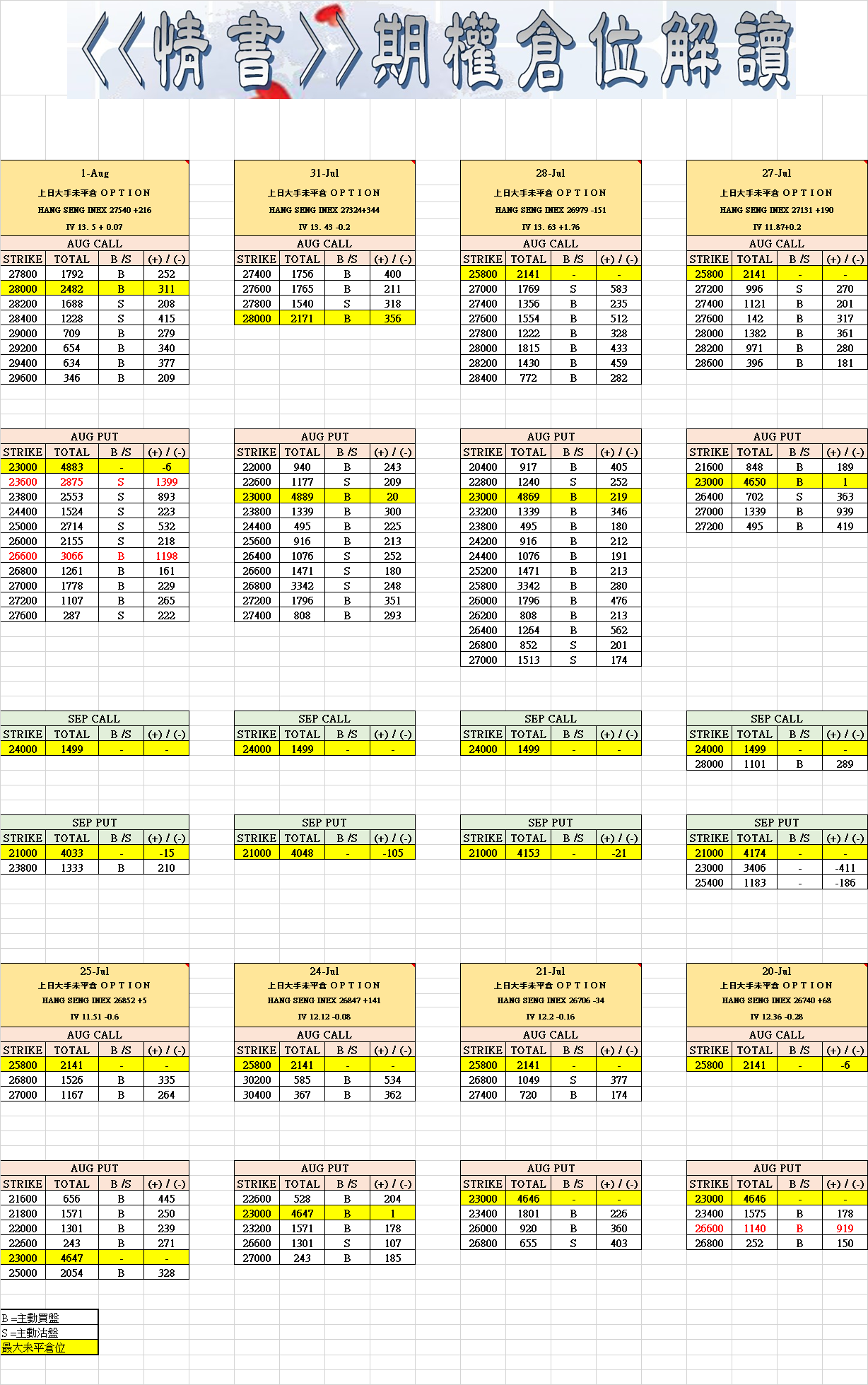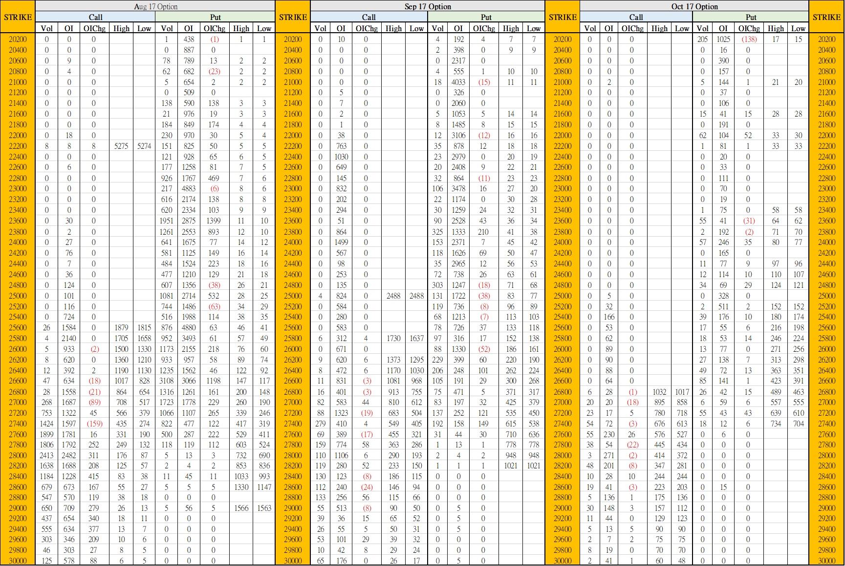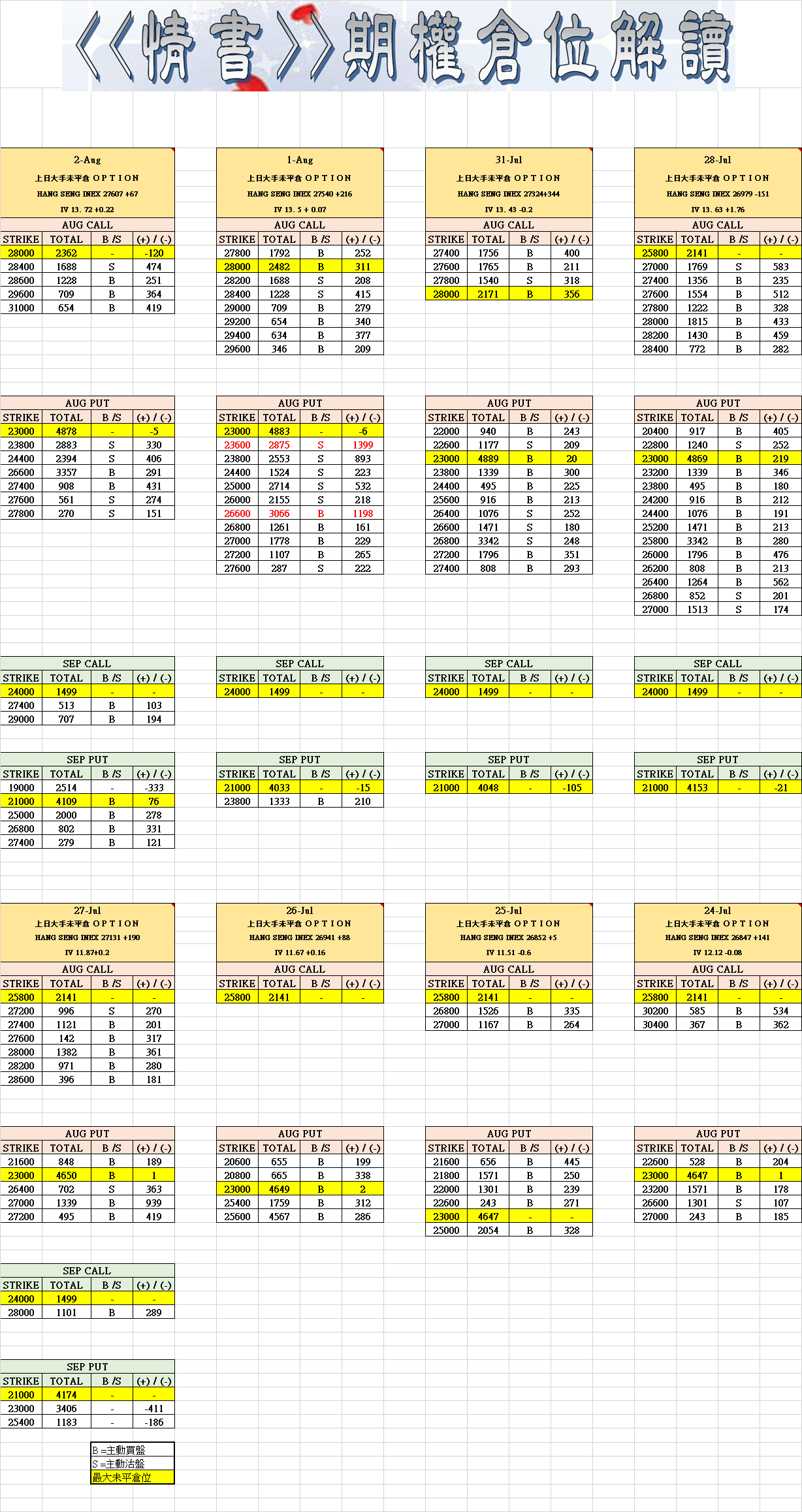 8月2日叁月期權數據