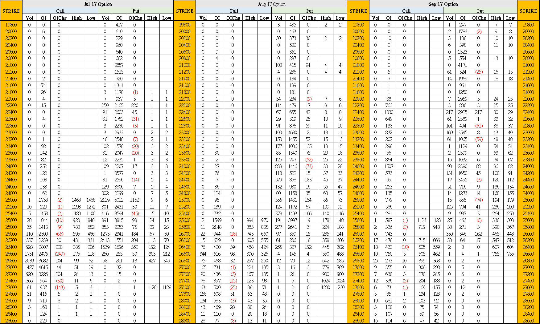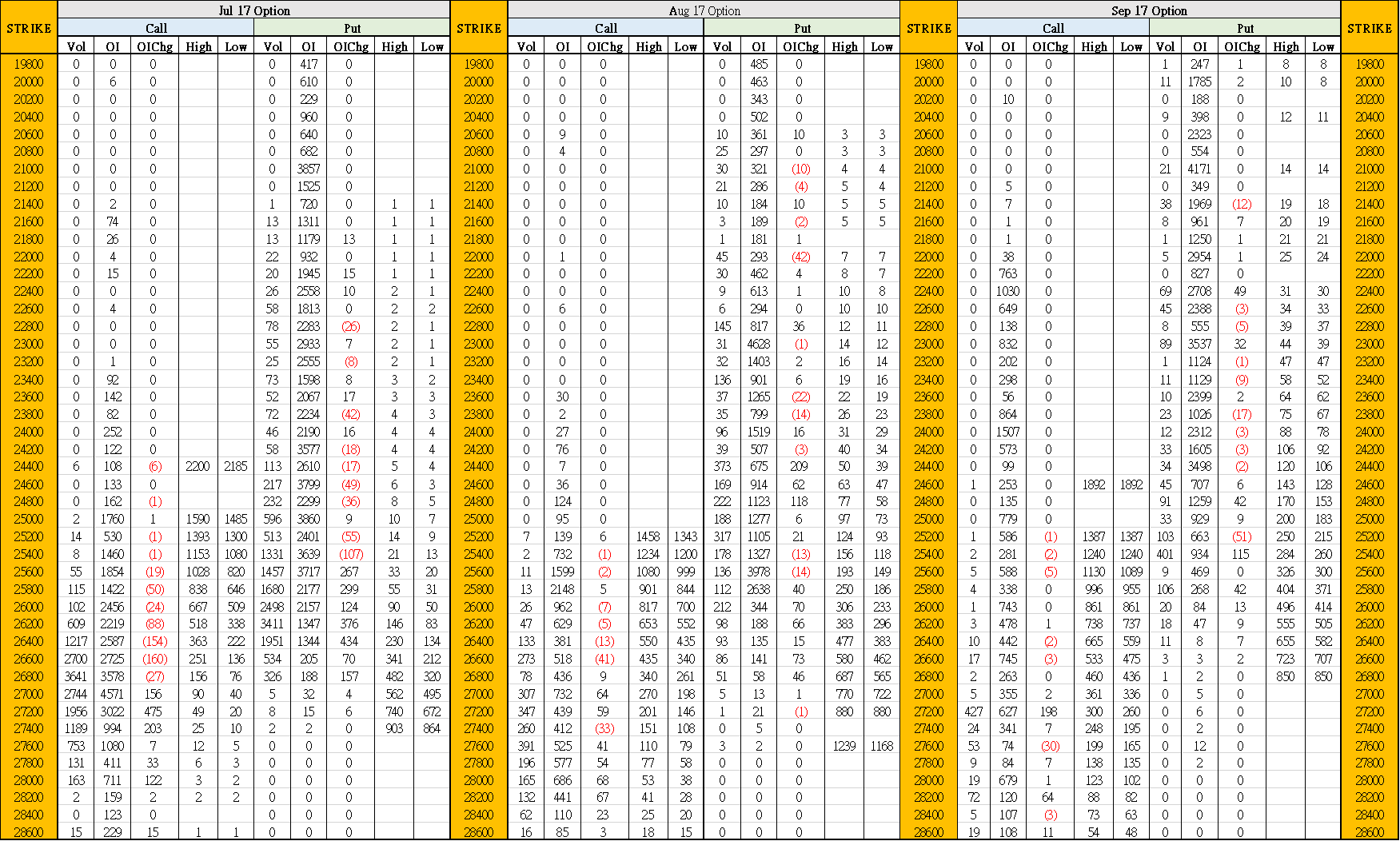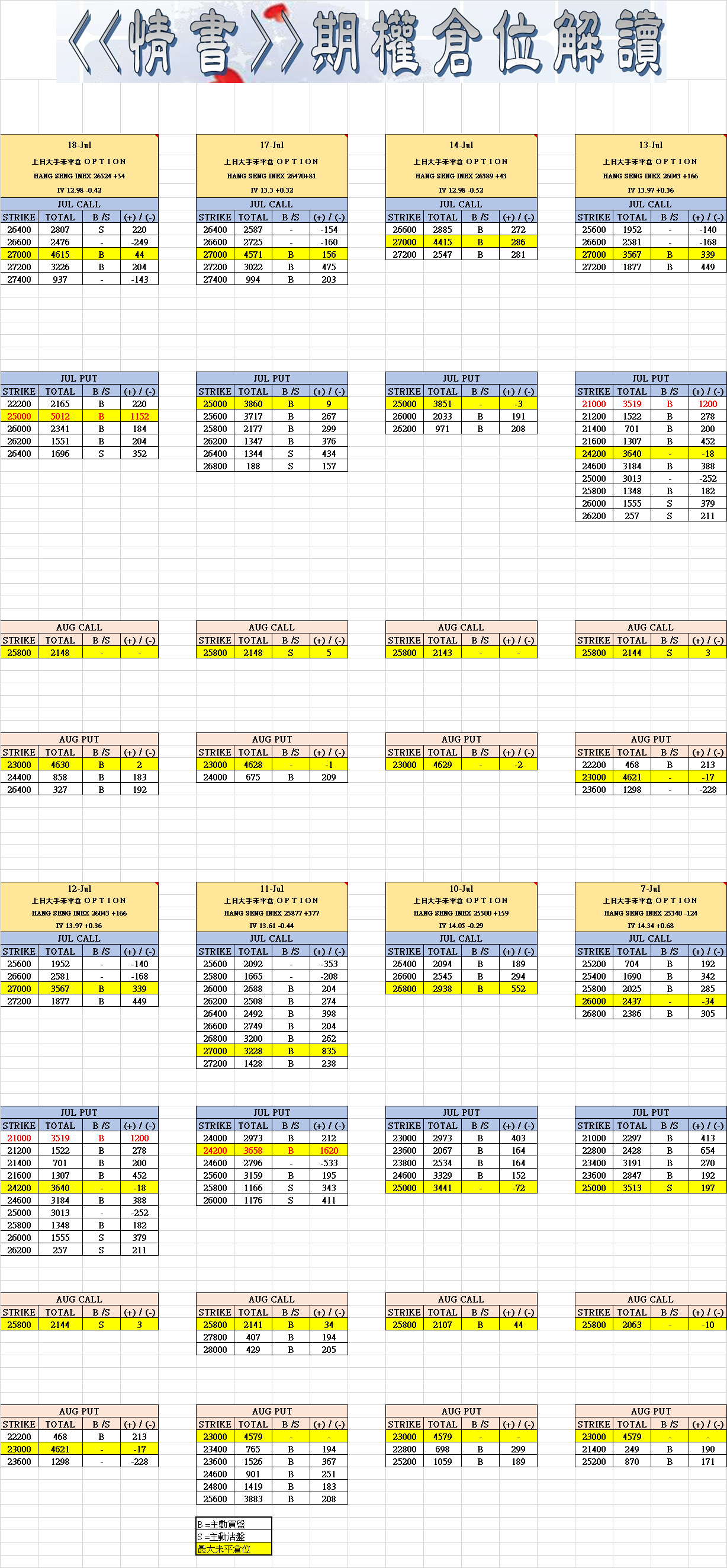 7月18日叁月期權數據